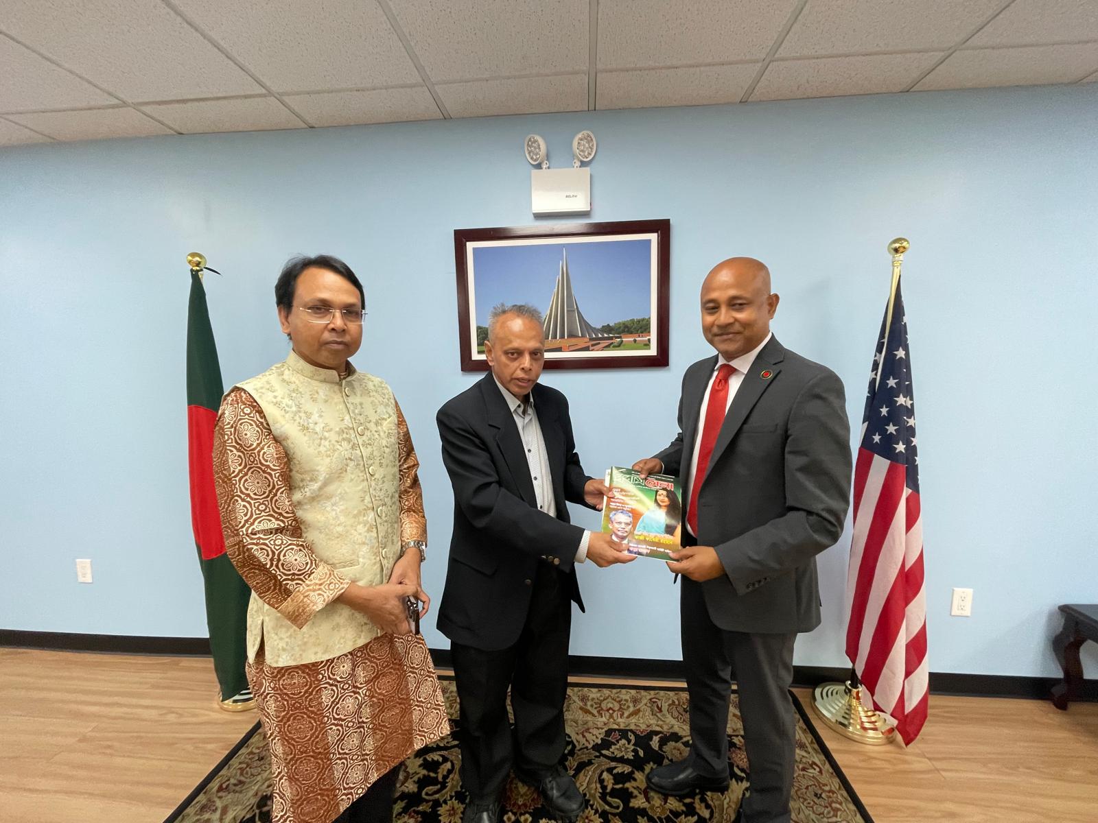 নিউইয়র্কে কনসাল জেনারেল মোহাম্মদ মোজাম্মেল হকের হাতে প্রবাস মেলা”র সৌজন্য কপি প্রদান।