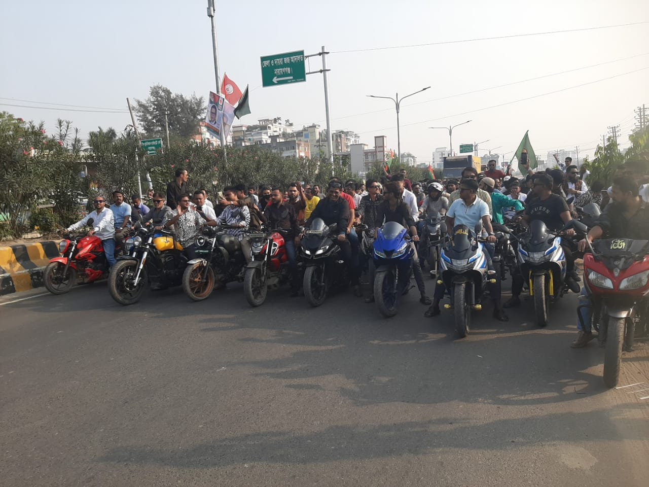 জেলা পরিষদ থেকে সাইনবোর্ড পর্যন্ত শতাধিক মোটরসাইকেলে বিক্ষোভ মিছিল।