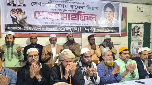 বেগম খালেদা জিয়ার রোগমুক্তি কামনায় সিরাজগঞ্জে ওলামা দলের উদ্যোগে দোয়া মাহফিল।