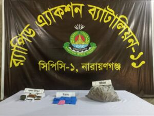 মাদকবিরোধী বিশেষ অভিযান,মাদকদ্রব্য নিয়ন্ত্রণে র্যাব-১১ নিয়মিত অভিযান পরিচালনা করছে। এরই অংশ হিসেবে গোপন তথ্যের ভিত্তিতে ০৩ ডিসেম্বর ২০২৫ তারিখ নারায়ণগঞ্জের ফতুল্লা থানাধীন পিলকুনী পাঁচতলা এলাকায় সিপিসি-১, র্যাব-১১ এর একটি আভিযানিক দল বিশেষ অভিযান পরিচালনা করে।